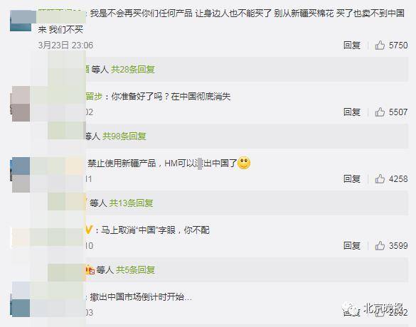 在@HM中国 最近发布的三条微博下,大批网友留言表示:退出中国。目前相关留言仍在不断增长,记者粗略计算了下,20分钟内增加了近千条。