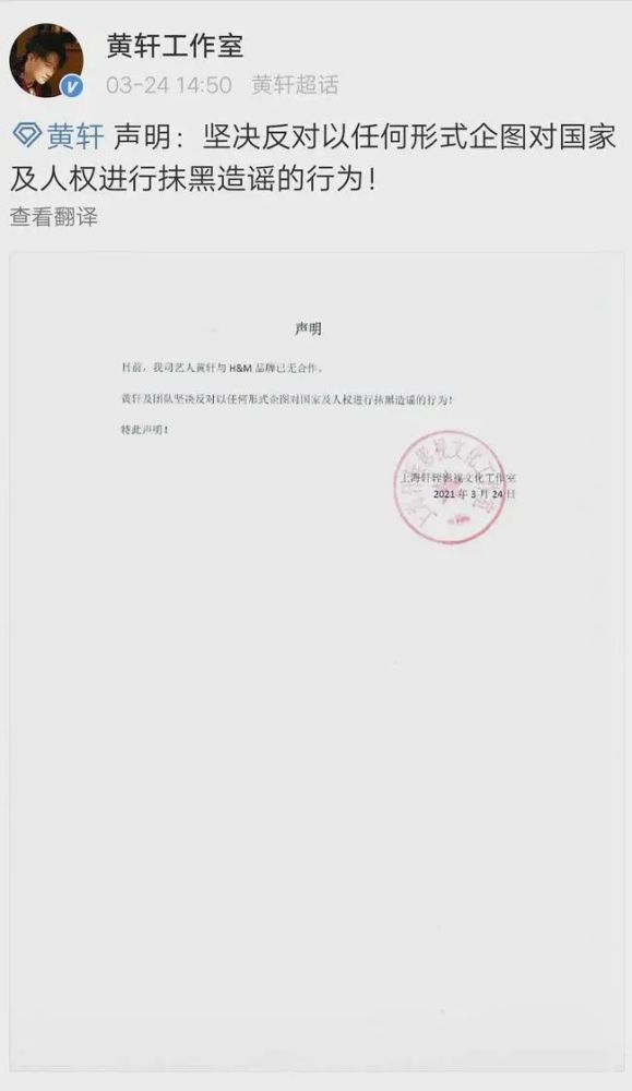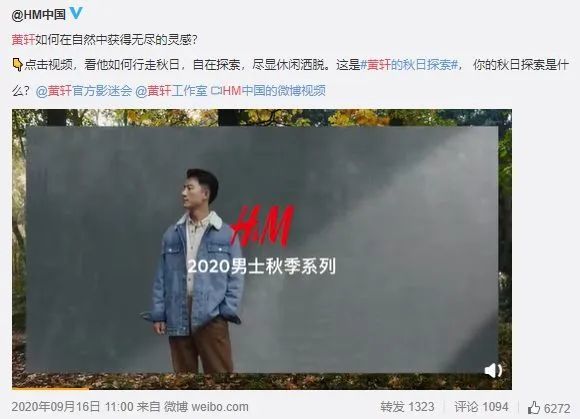 明星@黄轩 随后也迅速与H&M撇清关系,他在去年有过一次合作: