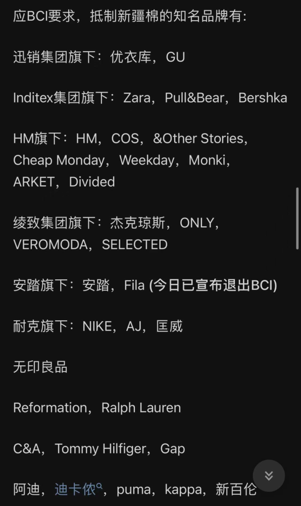 第二步,列名单,明确所有加入、支持BCI(也就是出台暂停新疆棉花许可标准、搞事情的傀儡组织)的品牌,然后抵制。