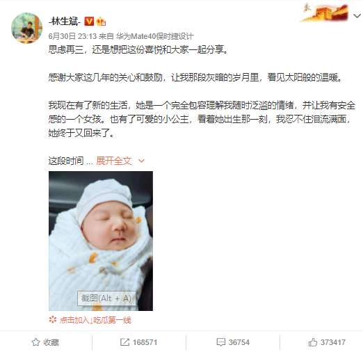 自林生斌6月30日给大家分享自己的“喜悦”,自己曝出已经隐婚生子后,网络上的讨论持续发酵。