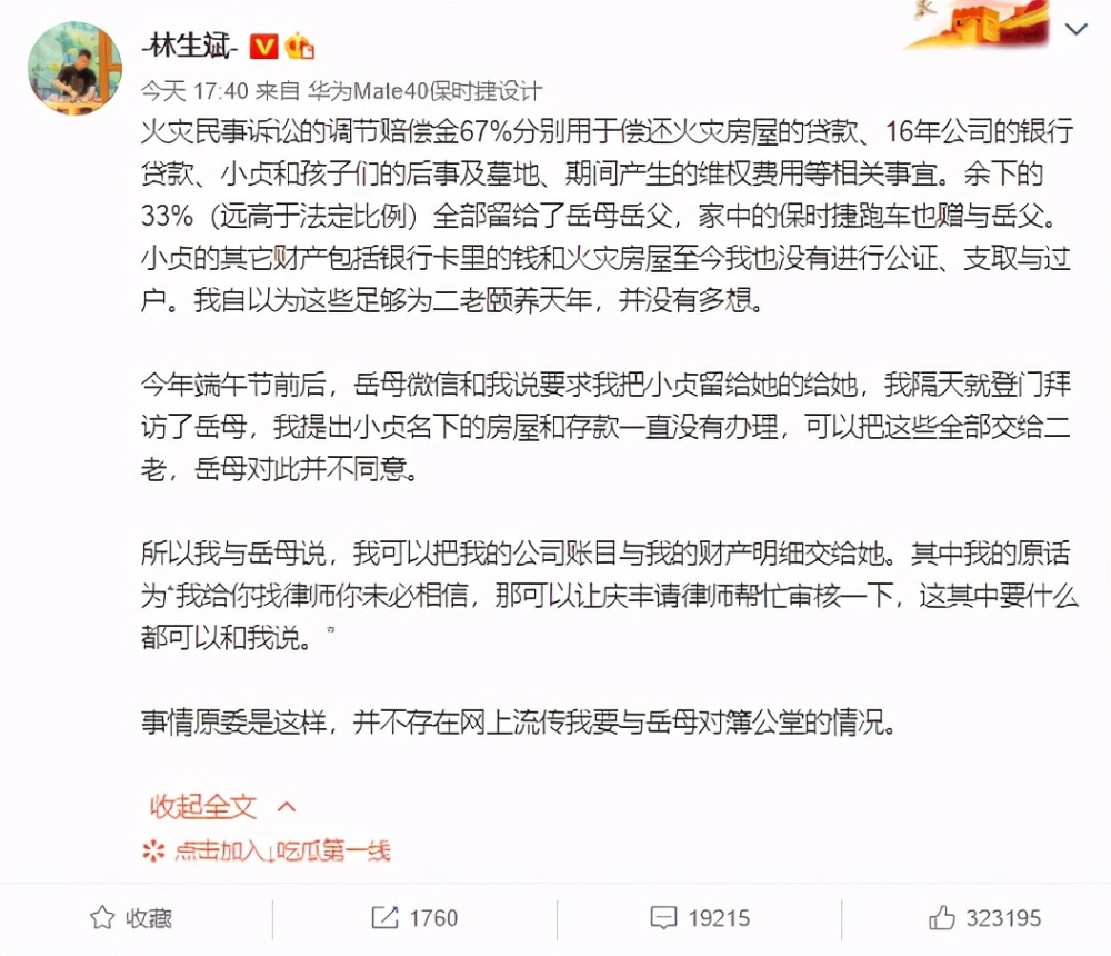 还是挺有逻辑的,先表达自己对前妻父母还有尊敬和感情,再叙述没有对簿公堂的事实。但这种时候,越有逻辑的人越可怕。