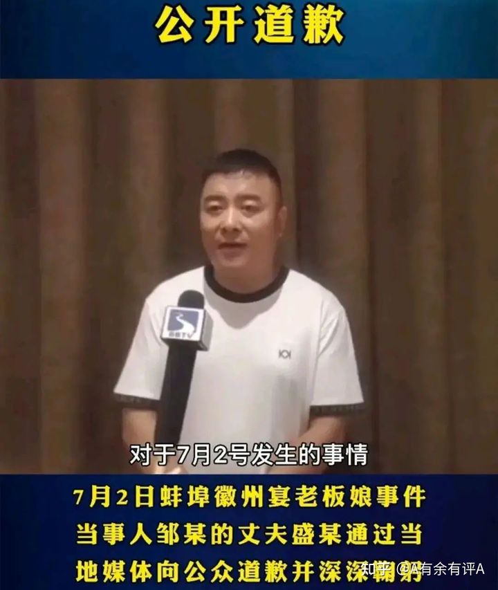 7月6日,蚌埠徽州宴会饮食有限公司法人代表盛祝涛通过媒体,对妻子的言行伤害了对方,给社会带来的很多负面影响,诚挚道歉。