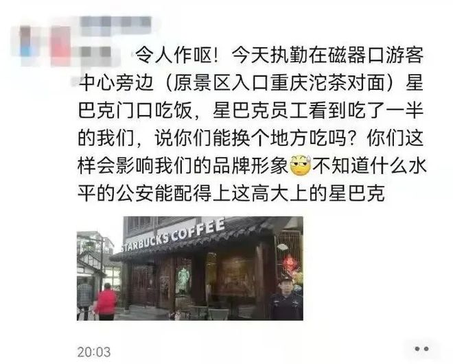 一条来自执勤民警的朋友圈将重庆磁器口星巴克门店推上了舆论的风口浪尖。