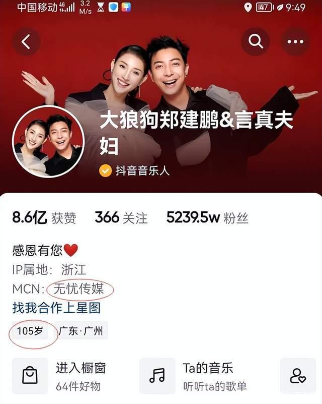以抖音为例,网红主播“大狼狗郑建鹏&言真夫妇”显示年龄为105岁,显然这是一条不实信息,抖音平台暂未督促其修正。