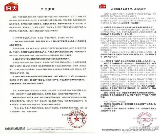 3、但海天的公关团队之蠢,也是前无古人,它不仅没有以用户视角去讲清楚国家标准的问题,更不去关心中国消费者的群体权利意识,反而把“双标”与某些势力在抹黑“中国品牌企业”划等号,几次回应都不停绑架民族情绪,代表“中国品牌企业”去质疑别人质疑你的动机,完败。而自媒体们更是都在为了迎合流量,脱离“标准”去谈“双标”。