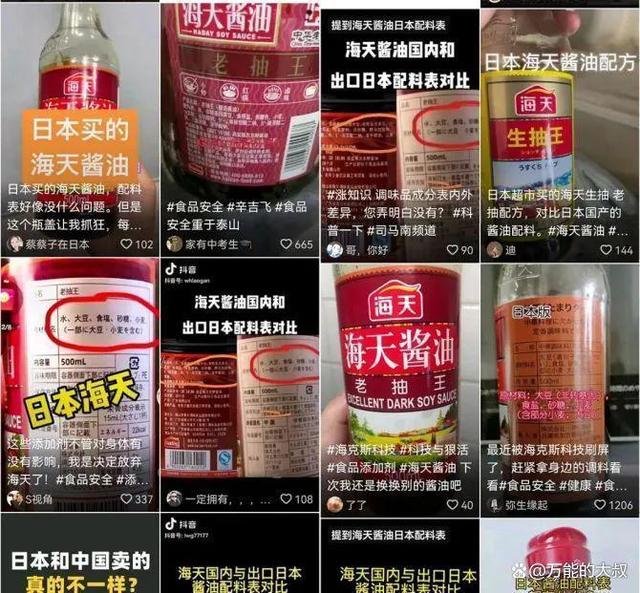 大家从只关注中国酱油的配料表,开始转移到了对比上,“双标”话题已经在无数个案例中被广泛验证,这是非常有效的话题和流量,在酱油上也不例外。