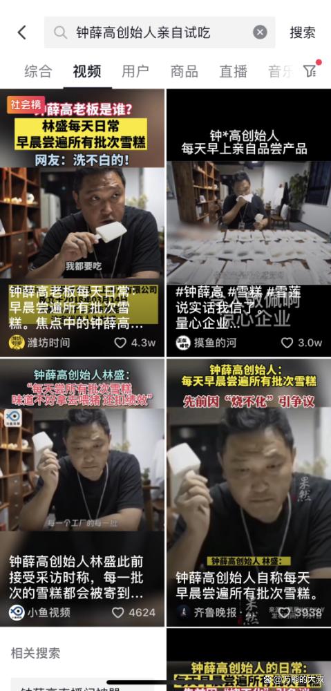 还有第三波!一条视频随后火了起来,内容是“钟薛高创始人林盛每天早上尝遍所有批次雪糕”,把林在2年前接受媒体采访的片段拿出来,结合最近的舆情,凸显了老板的做作。