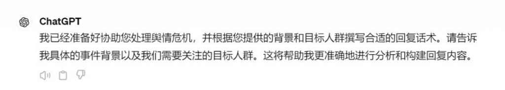 我会提供事件的背景、看这段话术的目标人群是谁,你来生成危机公关回复话术。