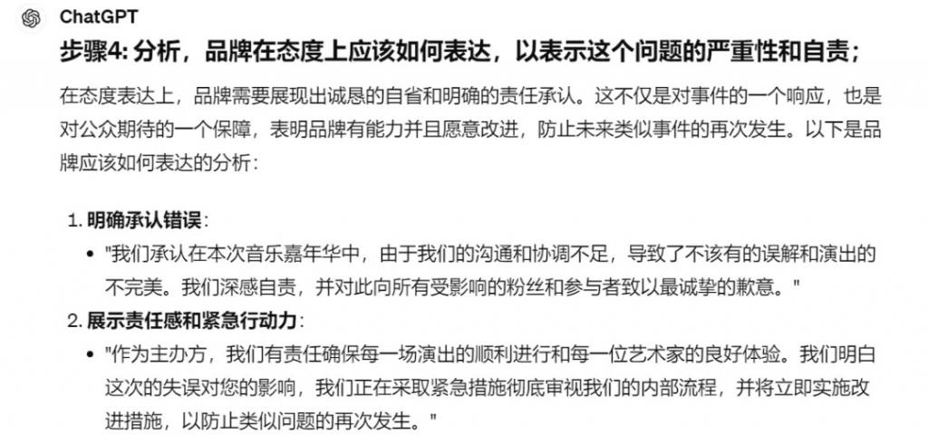 4. 分析,品牌在态度上应该如何表达,以表示这个问题的严重性和自责;