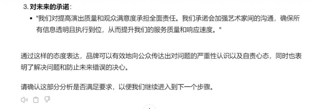 2)在高度上,没有体现出一种社会担当和责任感。比如是不是意识到,因为这次事件,让大家对整个演出行业产生了信任危机,同时也让艺人的粉丝受到了情感伤害。