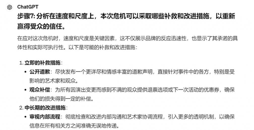7. 分析,在速度和尺度上,本次危机可以采取哪些补救和改进措施,以重新赢得受众的信任。