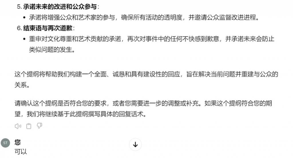 1、能够在公关回复中体现出真诚的态度,确保文本传达出对事件的认真反思和对公众情绪的敏感回应。