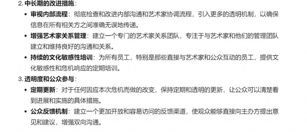 2. 长期改进:我们将彻底检查并改进我们的内部流程,特别是艺术家协调和沟通机制。我们将引入更多透明度,确保信息的准确传达和执行。