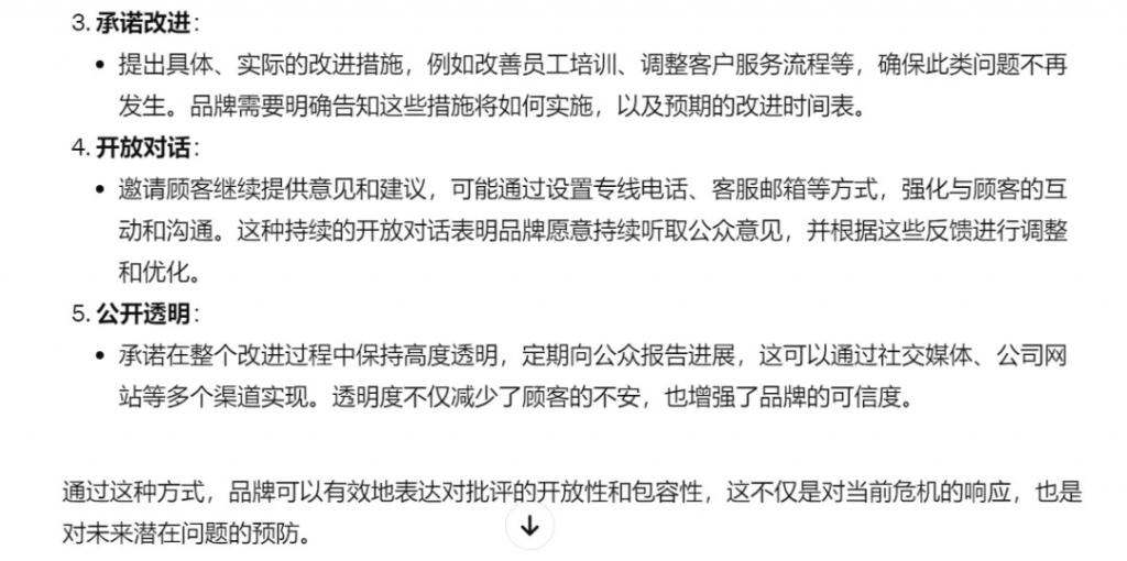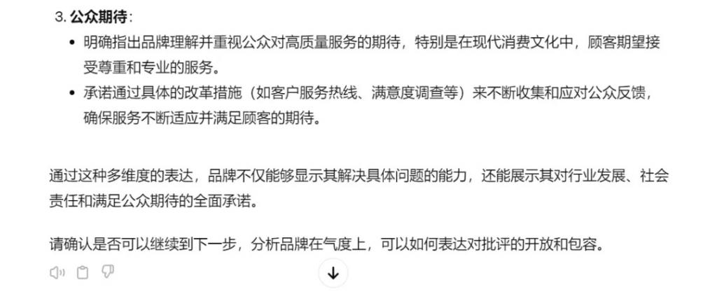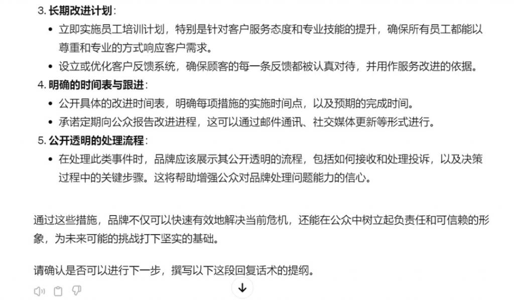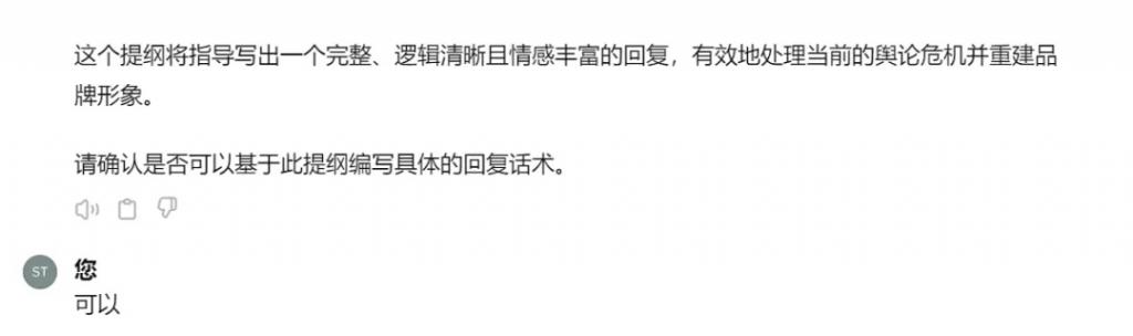 2、具备快速生成回复内容的能力,确保在短时间内回应公众关切,表现出企业的责任感和紧急行动力。