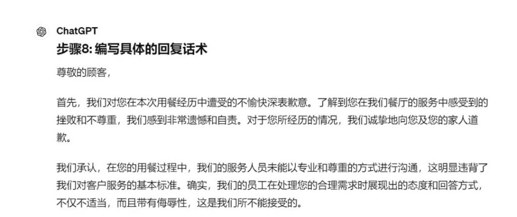 这明显带有一种侮辱。我们来看看 ChatGPT 的道歉沟通话术: