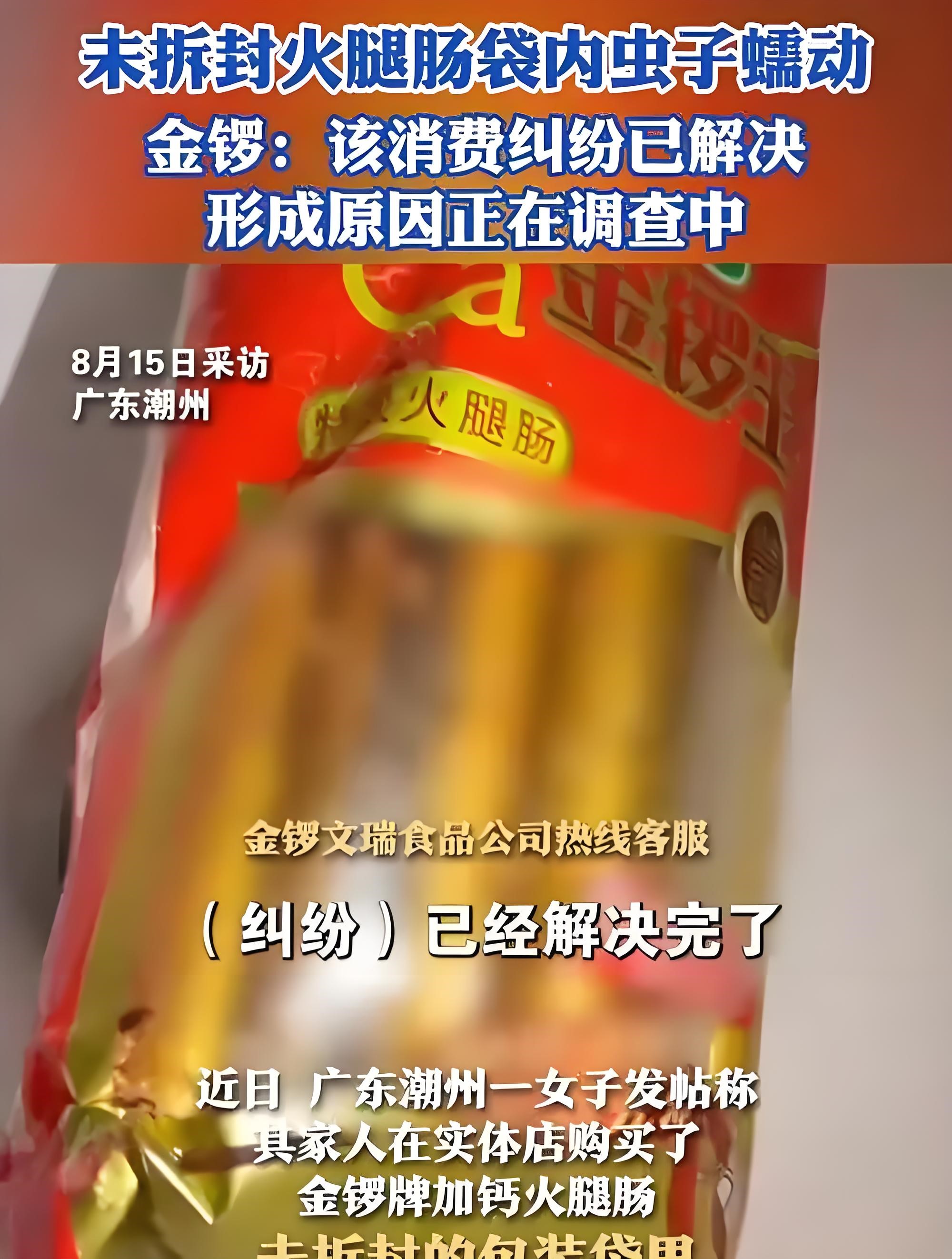 “我们对近日在金锣火腿肠产品中发现活虫的事件感到震惊和遗憾。食品安全始终是我们最为重视的承诺。对于此事件给消费者带来的困扰和不安,我们深表歉意,并已立即展开全面调查。”